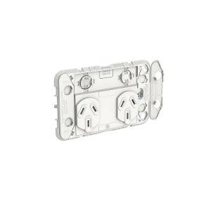 The switched socket outlet is designed with hole indicators for easy hole-saw installation and the 84 mm mounting centres will fit standard mounting accessories. Tapping pad helps to ensure that you get a level install and protective flaps help to prevent direct access to screws once installed. Each twin switch grid plate comes with pre-mounted screws, making horizontal mounting quick and easy.