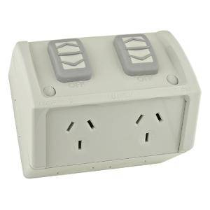 Description Clipsal WSC227/2RG 3 Pin General Purpose Weatherproof Outlet Socket Switch, 250V, 10A, Resistant Grey Weatherproof Powerpoint